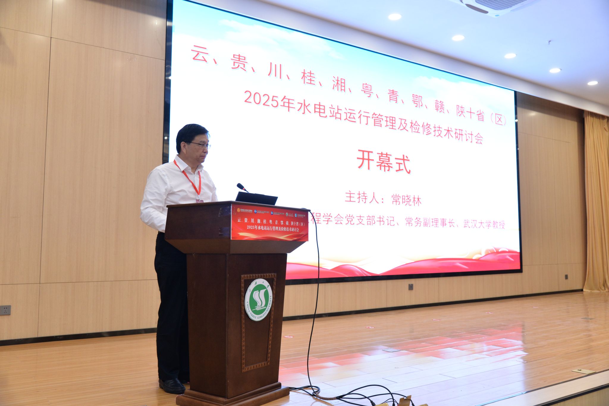 湖北省水力发电工程学会常务副理事长常晓林教授主持大会开幕式